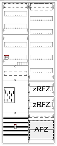 Zählerschrank, Baureihe ComfortLine A, Komplettschrank, mit BKE-I, Anbaumöglichkeit: seitlich, Montageart: Aufputz, Unterputz, teilversenkt, für den Innenbereich, mit Tür, Schutzklasse II (schutzisoliert), Schutzart IP31, mit VDE-Prüfzeichen, geltende Normen: DIN VDE 0603-1, DIN VDE 0603-2-1, VDE AR-N 4100:2019-04, IK-Code IK07, Bemessungsbetriebsspannung Ue 400V AC 50/60 Hz, Bemessungsstrom In 63 A, pulverbeschichtet, in RAL 9016, Gehäuse aus Stahlblech, einflüglige Tür, Tür aus Stahlblech, mit Standardverschluss, Türöffnungswinkel 120 Grad, Türanschlag rechts oder links, Rückwand aus Stahlblech / Kunststoff, Leitungseinführung oben über Membranflansch montiert, unten über 2x Kabeleinführungsflansch beiliegend, seitlich über Flanschöffnung vorgeprägt, Rückwand Kabeleinführung vorgeprägt, Abmessungen in mm (H x B x T): 1400 x 550 x 215, Zählerplatz verdrahtet, Netzsystem TN-S, 5-polig, Stecktechnik, Netzseitiger Anschlussraum Zählerplatz: mit Sammelschiene, vorbereitet für SH-Schalter, Einspeiseklemmen bis 25 mm², Anlagenseitiger Anschlussraum Zählerplatz: mit Hauptleitungsabzweigklemme, Raum für Zusatzgeräte des eHZ 150 mm, Anzahl Zählerplätze 1, Anzahl Reserveplätze 1, Anzahl Verteilerreihen 5, mit APZ-Raum, Rasteinheit 7 RE, Bauhöhe 3, Feldbreite 2, Platzeinheiten 168, Abdeckungen aus Kunststoff, plombierbarer Schnellverschluss und 90 Grad Druck-Drehverschluss, RAL 7035
