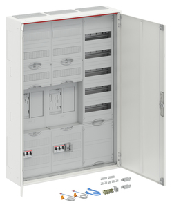Zählerschrank, Baureihe ComfortLine A, Komplettschrank, mit BKE-I, Anbaumöglichkeit: seitlich, Montageart: Aufputz, Unterputz, teilversenkt, für den Innenbereich, mit Tür, Schutzklasse II (schutzisoliert), Schutzart IP31, mit VDE-Prüfzeichen, geltende Normen: DIN VDE 0603-1, DIN VDE 0603-2-1, VDE AR-N 4100:2019-04, IK-Code IK07, Bemessungsbetriebsspannung Ue 400V AC 50/60 Hz, Bemessungsstrom In 63 A, pulverbeschichtet, in RAL 9016, Gehäuse aus Stahlblech, Doppeltür, Tür aus Stahlblech, mit Standardverschluss, Türöffnungswinkel 120 Grad, Türanschlag rechts und links, Rückwand aus Stahlblech / Kunststoff, Leitungseinführung oben über Membranflansch montiert, unten über 2x Kabeleinführungsflansch beiliegend, seitlich über Flanschöffnung vorgeprägt, Rückwand Kabeleinführung vorgeprägt, Abmessungen in mm (H x B x T): 1100 x 800 x 215, Zählerplatz verdrahtet, Netzsystem TN-S, 5-polig, Stecktechnik, Netzseitiger Anschlussraum Zählerplatz: mit Sammelschiene, mit 2x selektiver Hauptleitungsschutzschalter E50A 3polig, Einspeiseklemmen bis 25 mm², Anlagenseitiger Anschlussraum Zählerplatz: mit Hauptleitungsabzweigklemme, Raum für Zusatzgeräte des eHZ 150 mm, Anzahl Zählerplätze 2, Anzahl Reserveplätze 2, Anzahl Verteilerreihen 5, mit APZ-Raum, Rasteinheit 7 RE, Bauhöhe 3, Feldbreite 3, Platzeinheiten 252, Abdeckungen aus Kunststoff, plombierbarer Schnellverschluss und 90 Grad Druck-Drehverschluss, RAL 7035