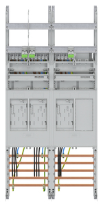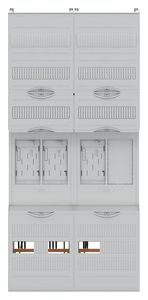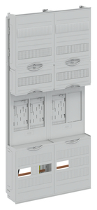 Zählerfeld, Baureihe ComfortLine, passend für Baureihe: ComfortLine A und ComfortLine AD, Komplettfeld, mit BKE-I, Schutzart IP2XC, mit VDE-Prüfzeichen, geltende Normen: DIN VDE 0603-1, Bemessungsbetriebsspannung Ue 415V AC  Hz, Bemessungsstrom In 63 A, in RAL 7035, Abmessungen in mm (H x B x T): 1050 x 500 x 160, Zählerplatz verdrahtet, Netzsystem TN-S, 5-polig, Stecktechnik, Netzseitiger Anschlussraum Zählerplatz: mit Sammelschiene, vorbereitet für SH-Schalter, Ohne, Anlagenseitiger Anschlussraum Zählerplatz: mit Hauptleitungsabzweigklemme, Raum für Zusatzgeräte des eHZ 150  mm, Anzahl Zählerplätze 3, Anzahl Reserveplätze 1, Rasteinheit 7 RE, Bauhöhe 3, Feldbreite 2, Platzeinheiten 168, Abdeckungen aus Kunststoff, plombierbarer Schnellverschluss, RAL 7035