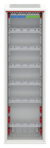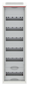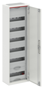 Kleinverteiler, teilausgebauter Schrank, Anbaumöglichkeit: oben und unten, Montageart: Aufputz, für den Innenbereich, mit Tür, Schutzklasse II (schutzisoliert), in Verbindung mit Erdungsset (Zubehör) Schutzklasse I möglich, Schutzart IP44, geltende Normen: DIN EN 61439-1, VDE 0660-600-1, DIN EN 61439-3, VDE 0660-600-3, IK-Code IK07, Bemessungsbetriebsspannung Ue 400V AC 50/60 Hz, Bemessungsstrom In 125 A, bedingt UV beständigpulverbeschichtet, in RAL 9016, Gehäuse aus Stahlblech, einflüglige Tür, Tür aus Stahlblech, in RAL 9016, mit Standardverschluss, Türöffnungswinkel 120 Grad, Türanschlag rechts oder links, Leitungseinführung oben über Membranflansch montiert, unten über Flanschöffnung vorgeprägt, Abmessungen in mm (H x B x T): 950 x 300 x 160, Rasteinheit 6 RE, Feldbreite 1, Platzeinheiten 72, Reihenabstand in mm: 125, Abdeckungen aus Kunststoff, 90 Grad Druck-Drehverschluss, RAL 7035, mit N/PE Quick-Steckklemme, Kabelabfangschiene integriert, ausgebaut mit Verteilerfeld, Geräteträger herausnehmbar