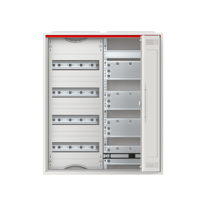 Kleinverteiler, teilausgebauter Schrank, Anbaumöglichkeit: oben und unten, Montageart: Aufputz, für den Innenbereich, mit Tür, Schutzklasse II (schutzisoliert), in Verbindung mit Erdungsset (Zubehör) Schutzklasse I möglich, Schutzart IP30, geltende Normen: DIN EN 61439-1, VDE 0660-600-1, DIN EN 61439-3, VDE 0660-600-3, IK-Code IK07, Bemessungsbetriebsspannung Ue 400V AC 50/60 Hz, Bemessungsstrom In 125 A, pulverbeschichtet, in RAL 9016, Gehäuse aus Stahlblech, Stahlblechtür belüftet WIFI, Tür aus Stahlblech, in RAL 9016, mit Standardverschluss, Türöffnungswinkel 120 Grad, Türanschlag rechts oder links, Leitungseinführung oben über Membranflansch montiert, unten über Flanschöffnung vorgeprägt, Abmessungen in mm (H x B x T): 650 x 550 x 160, Rasteinheit 4 RE, Feldbreite 2, Platzeinheiten 48, Reihenabstand: 125, Abdeckungen aus Kunststoff, 90 Grad Druck-Drehverschluss, RAL 7035, mit N/PE Quick-Steckklemme, Kabelabfangschiene integriert, ausgebaut mit Verteilerfeld und Multimediafeld, Geräteträger herausnehmbar