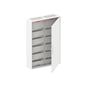 Kleinverteiler, teilausgebauter Schrank, Anbaumöglichkeit: oben und unten, Montageart: Aufputz, für den Innenbereich, mit Tür, Schutzklasse II (schutzisoliert), in Verbindung mit Erdungsset (Zubehör) Schutzklasse I möglich, Schutzart IP44, geltende Normen: DIN EN 61439-1, VDE 0660-600-1, DIN EN 61439-3, VDE 0660-600-3, IK-Code IK07, Bemessungsbetriebsspannung Ue 400V AC 50/60 Hz, Bemessungsstrom In 125 A, bedingt UV beständigpulverbeschichtet, in RAL 9016, Gehäuse aus Stahlblech, einflüglige Tür, Tür aus Stahlblech, in RAL 9016, mit Standardverschluss, Türöffnungswinkel 120 Grad, Türanschlag rechts oder links, Leitungseinführung oben über Membranflansch montiert, unten über Flanschöffnung vorgeprägt, Abmessungen in mm (H x B x T): 800 x 550 x 160, Rasteinheit 5 RE, Feldbreite 2, Platzeinheiten 120, Reihenabstand in mm: 125, Abdeckungen aus Kunststoff, 90 Grad Druck-Drehverschluss, RAL 7035, mit N/PE Quick-Steckklemme, Kabelabfangschiene integriert, ausgebaut mit Verteilerfeld, Geräteträger herausnehmbar
