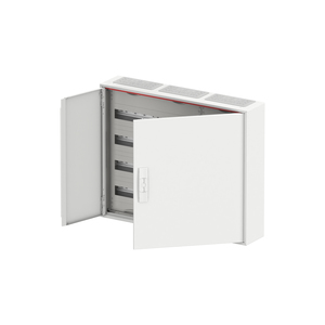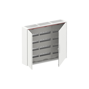 Kleinverteiler, teilausgebauter Schrank, Anbaumöglichkeit: oben und unten, Montageart: Aufputz, für den Innenbereich, mit Tür, Schutzklasse II (schutzisoliert), in Verbindung mit Erdungsset (Zubehör) Schutzklasse I möglich, Schutzart IP44, geltende Normen: DIN EN 61439-1, VDE 0660-600-1, DIN EN 61439-3, VDE 0660-600-3, IK-Code IK07, Bemessungsbetriebsspannung Ue 400V AC 50/60 Hz, Bemessungsstrom In 125 A, bedingt UV beständigpulverbeschichtet, in RAL 9016, Gehäuse aus Stahlblech, Doppeltür, Tür aus Stahlblech, in RAL 9016, mit Standardverschluss, Türöffnungswinkel 120 Grad, Türanschlag rechts und links, Leitungseinführung oben über Membranflansch montiert, unten über Flanschöffnung vorgeprägt, Abmessungen in mm (H x B x T): 650 x 800 x 160, Rasteinheit 4 RE, Feldbreite 3, Platzeinheiten 144, Reihenabstand in mm: 125, Abdeckungen aus Kunststoff, 90 Grad Druck-Drehverschluss, RAL 7035, mit N/PE Quick-Steckklemme, Kabelabfangschiene integriert, ausgebaut mit Verteilerfeld, Geräteträger herausnehmbar