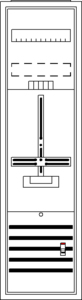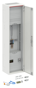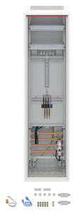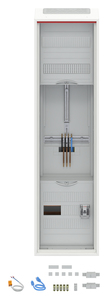 Zählerschrank, Baureihe ComfortLine A, Komplettschrank, mit Zählerkreuz, Anbaumöglichkeit: seitlich, Montageart: Aufputz, Unterputz, teilversenkt, für den Innenbereich, mit Tür, Schutzklasse II (schutzisoliert), Schutzart IP31, mit VDE-Prüfzeichen, geltende Normen: DIN VDE 0603-1, DIN VDE 0603-2-1, VDE AR-N 4100:2019-04, IK-Code IK07, Bemessungsbetriebsspannung Ue 400V AC 50/60 Hz, Bemessungsstrom In 63 A, pulverbeschichtet, in RAL 9016, Gehäuse aus Stahlblech, einflüglige Tür, Tür aus Stahlblech, mit Standardverschluss, Türöffnungswinkel 120 Grad, Türanschlag rechts oder links, Rückwand aus Stahlblech / Kunststoff, Leitungseinführung oben über Membranflansch montiert, unten über 1x Kabeleinführungsflansch beiliegend, seitlich über Flanschöffnung vorgeprägt, Rückwand Kabeleinführung vorgeprägt, Abmessungen in mm (H x B x T): 1100 x 300 x 215, Zählerplatz verdrahtet, Netzsystem TN-S, auch für TT-System geeignet, 5-polig, Direktanschluss, mit Kanal für Steuerzwecke, Netzseitiger Anschlussraum Zählerplatz: mit Sammelschiene, vorbereitet für SH-Schalter, Einspeiseklemmen bis 25 mm², Anlagenseitiger Anschlussraum Zählerplatz: mit Hauptleitungsabzweigklemme, Anzahl Zählerplätze 1, Rasteinheit 7 RE, Bauhöhe 3, Feldbreite 1, Platzeinheiten 84, Abdeckungen aus Kunststoff, plombierbarer Schnellverschluss, RAL 7035