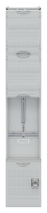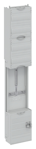 Zählerfeld, Baureihe ComfortLine, passend für Baureihe: ComfortLine A und ComfortLine AD, Komplettfeld, mit Zählerkreuz, Schutzart IP2XC, mit VDE-Prüfzeichen, geltende Normen: DIN VDE 0603-1, Bemessungsbetriebsspannung Ue 415V AC Hz, Bemessungsstrom In 16 A, in RAL 7035, Abmessungen in mm (H x B x T): 1350 x 250 x 160, Zählerplatz verdrahtet, Netzsystem TN-S, 5-polig, mit Kanal für Steuerzwecke, Netzseitiger Anschlussraum Zählerplatz: mit Sammelschiene, Steuerleitungsklemme 7-polig schraubenlos, Netzseitiger Anschlussraum SG-Platz: mit Sicherungssockel z.B. D01/1-polig plombierbar, Anzahl SG-Plätze 1, Anzahl Verteilerreihen 2, Rasteinheit 9 RE, Bauhöhe 5, Feldbreite 1, Platzeinheiten 108, Abdeckungen aus Kunststoff, plombierbarer Schnellverschluss, RAL 7035