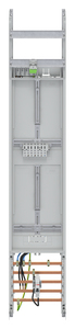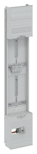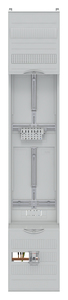 Zählerfeld, Baureihe ComfortLine, passend für Baureihe: ComfortLine A und ComfortLine AD, Komplettfeld, mit Zählerkreuz, Schutzart IP2XC, mit VDE-Prüfzeichen, geltende Normen: DIN VDE 0603-1, Bemessungsbetriebsspannung Ue 415V AC Hz, Bemessungsstrom In 63 A, in RAL 7035, Abmessungen in mm (H x B x T): 1350 x 250 x 160, Zählerplatz verdrahtet, Netzsystem TN-S, 5-polig, Zählersteckklemme, Netzseitiger Anschlussraum Zählerplatz: mit Sammelschiene, vorbereitet für SH-Schalter, Ohne, Netzseitiger Anschlussraum SG-Platz: mit LS-Schalter 1-polig B6/25kA plombierbar, Anlagenseitiger Anschlussraum Zählerplatz: mit Hauptleitungsabzweigklemme, Anzahl Zählerplätze 1, Anzahl SG-Plätze 1, Rasteinheit 9 RE, Bauhöhe 5, Feldbreite 1, Platzeinheiten 108, Abdeckungen aus Kunststoff, plombierbarer Schnellverschluss, RAL 7035