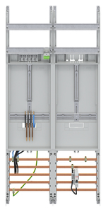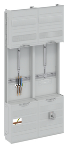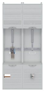 Zählerfeld, Baureihe ComfortLine, passend für Baureihe: ComfortLine A und ComfortLine AD, Komplettfeld, mit Zählerkreuz, Schutzart IP2XC, mit VDE-Prüfzeichen, geltende Normen: DIN VDE 0603-1, Bemessungsbetriebsspannung Ue 415V AC Hz, Bemessungsstrom In 63 A, in RAL 7035, Abmessungen in mm (H x B x T): 1050 x 500 x 160, Zählerplatz verdrahtet, Netzsystem TN-S, 5-polig, Direktanschluss, Netzseitiger Anschlussraum Zählerplatz: mit Sammelschiene, vorbereitet für SH-Schalter, Ohne, Netzseitiger Anschlussraum SG-Platz: mit LS-Schalter 1-polig B6/25kA plombierbar, Anlagenseitiger Anschlussraum Zählerplatz: mit Hauptleitungsabzweigklemme, Anzahl Zählerplätze 1, Anzahl SG-Plätze 1, Rasteinheit 7 RE, Bauhöhe 3, Feldbreite 2, Platzeinheiten 168, Abdeckungen aus Kunststoff, plombierbarer Schnellverschluss, RAL 7035