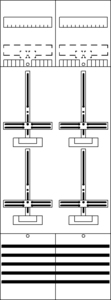 Zählerfeld, Baureihe ComfortLine, passend für Baureihe: ComfortLine A und ComfortLine AD, Komplettfeld, mit Zählerkreuz, Schutzart IP2XC, mit VDE-Prüfzeichen, geltende Normen: DIN VDE 0603-1, Bemessungsbetriebsspannung Ue 415V AC Hz, Bemessungsstrom In 63 A, in RAL 7035, Abmessungen in mm (H x B x T): 1350 x 500 x 160, Zählerplatz verdrahtet, Netzsystem TN-S, 5-polig, Direktanschluss, Netzseitiger Anschlussraum Zählerplatz: mit Sammelschiene, vorbereitet für SH-Schalter, Ohne, Anlagenseitiger Anschlussraum Zählerplatz: mit Hauptleitungsabzweigklemme, Anzahl Zählerplätze 4, Rasteinheit 9 RE, Bauhöhe 5, Feldbreite 2, Platzeinheiten 216, Abdeckungen aus Kunststoff, plombierbarer Schnellverschluss, RAL 7035