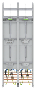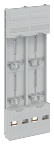 Zählerfeld, Baureihe ComfortLine, passend für Baureihe: ComfortLine A und ComfortLine AD, Komplettfeld, mit Zählerkreuz, Schutzart IP2XC, mit VDE-Prüfzeichen, geltende Normen: DIN VDE 0603-1, Bemessungsbetriebsspannung Ue 415V AC Hz, Bemessungsstrom In 63 A, in RAL 7035, Abmessungen in mm (H x B x T): 1350 x 500 x 160, Zählerplatz verdrahtet, Netzsystem TN-S, 5-polig, Zählersteckklemme, Netzseitiger Anschlussraum Zählerplatz: mit Sammelschiene, vorbereitet für SH-Schalter, Ohne, Anlagenseitiger Anschlussraum Zählerplatz: mit Hauptleitungsabzweigklemme, Anzahl Zählerplätze 4, Rasteinheit 9 RE, Bauhöhe 5, Feldbreite 2, Platzeinheiten 216, Abdeckungen aus Kunststoff, plombierbarer Schnellverschluss, RAL 7035