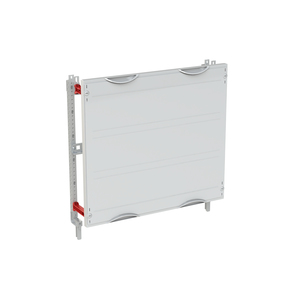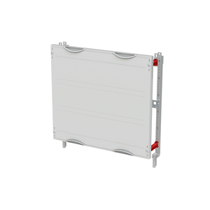 Innenausbausystem, Kombi-Sets, montiert auf EDF-Profil, für Hutprofilschienen für Reihenklemmen horizontal, Rasteinheit 3 RE = 450 mm, Feldbreite 2 = 500 mm, 72 Platzeinheiten, Reihenabstand: 150, Ausbau mit Hutprofilschiene 35 x 7,5 mm mit Lochung für Drahthalter, Abdeckungen aus Kunststoff, 90 Grad Druck-Drehverschluss, RAL 7035, einsetzbar ab einer Schranktiefe von 200 mm, Kombi-Sets werden oben oder unten am Verteilerfeld eingesteckt und auf der anderen Seite am Schrank befestigt. Die EDF-Profilschienen und Feldverbinder sind im Lieferumfang enthalten.