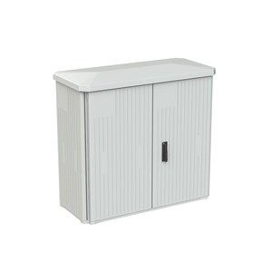 Kabelverteilerschrank mit großer Einbautiefe und profilierter Oberfläche. Sie haben einen Drei-Punkt-Verschluss mit Schwenkhebelgriff für Profilhalbzylinder. Die Schränke sind aus warm-verpresstem, Glasfaser-verstärktem Polyester, durchgefärbt in RAL 7035 Lichtgrau. Sie sind korrosionsbeständig und UV-beständig und somit für den Außeneinsatz geeignet. Die Gehäuse sind für Umgebungsbedingungen von -35°C bis +70°C geeignet. Die geöffnete Tür kann durch entfernen der Scharnierstifte leicht demontiert werden, für optimalen Zugang zum Schrank. Der Tür-Öffnungswinkel ist größer als 180°. Es gibt eingepresste Kernlöcher in der Rückwand für die Aufnahme von M8 Einpressmuttern zur Befestigung von Sammelschienen, Montagerahmen oder Montageplatte. Die Gehäuse werden mit offenem Boden geliefert, Bodenplatten sind im Zubehör erhältlich. Es gibt Befestigungspunkte in der Seitenwand zur Montage von horizontalen Sammelschienen. Die Gehäuse sind vorgesehen für die Montage auf Sockeln entsprechend DIN 43629 mit Standard-Abmessungen zwischen den Befestigungspunkten. EHGD1125 Schrank AP Gr.2 1125X1200X541