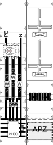 Mess- und Wandlerfeld, Komplettfeld, mit Zählerkreuz, für den Innenbereich, Schutzart IP2XC, geltende Normen: DIN EN 61439-1, VDE 0660-600-1, DIN EN 61439-2, VDE 0660-600-2, Bemessungsbetriebsspannung Ue 415V AC 50/60 Hz, Bemessungsstrom In 128 A, Bemessungsstrom der Schaltgerätekombination InA 160 A, in RAL 7035, Abmessungen in mm (H x B x T): 1350 x 500 x 160, Netzsystem TN-S, 5-polig, Anzahl SG-Plätze 1, Anzahl Wandlerzählerplatz 1, verdrahtet nach den Vorgaben des NB, Spannungspfad Sicherungssockel D01/3-polig plombierbar, Lastbereich: Sammelschienensystem Cu-Schienen 12 x 5 mm 5-polig, Trennstelle vor dem Wandler Sicherungslasttrenner NH00/160A, Wandlerbereich Wandlerauflage mit herausnehmbarer Wandlerlasche 170 x 30 x 5 mm, Ritz: EKS 60-03, EKS 70-04, EKSO 74, MBS: EASK 31.3, EASK 31.4, EASK 31.5, EASK 41.4, EASK 41.5 (Beistellung NB), Trennstelle nach dem Wandler Lastschalter 160 A / 3-polig (10-70qmm), Primärverdrahtung 70 qmm, N+PE Anschluss N+PE 95qmm, Hinweis: Wandleranlagen sind in einem separaten Gehäuse einzubauen. Für Energieversorgung Cottbus sind Schränke mit IP54 erforderlich, Rasteinheit 9 RE, Bauhöhe 5, Feldbreite 2, Platzeinheiten 216, Abdeckungen aus Kunststoff, plombierbarer Schnellverschluss, RAL 7035