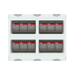 Innenausbau Modul, CombiLine, montiert im Schrank eingebaut, für NH00-Sicherungslasttrennschalter, Rasteinheit 4 RE = 600 mm, Feldbreite 3 = 750 mm, 144 Platzeinheiten, bestückt mit 12 NH-Sicherungslasttrennschalter NH00, Betriebsmittel Fabrikat: ABB, XLP, mit Sammelschienensystem 3-polig, Bemessungsstrom In max. 320 A, Abdeckungen aus Kunststoff, 90 Grad Druck-Drehverschluss, RAL 7035, Ausführung der Abdeckung: mit Ausschnitt, einsetzbar ab einer Schranktiefe von 200 mm, WR Montagegerüst muss separat bestellt werden