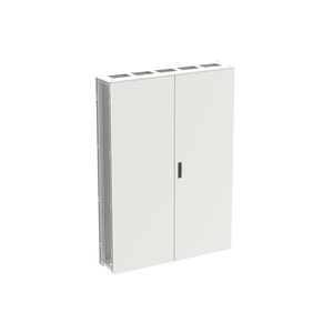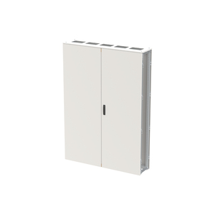 Reihenschaltschrank, Baureihe TriLine, Leerschrank, Anbaumöglichkeit: seitlich, für den Innenbereich, mit Tür, Rückwand und Deckblech, ohne Bodenblech, Schutzklasse I (geerdet), Schutzart max. IP54, Profile verzinkt, geltende Normen: DIN EN 61439-1, VDE 0660-600-1, DIN EN 61439-2, VDE 0660-600-2, IK-Code IK10, pulverbeschichtet, in RAL 7035, Gehäuse aus Stahlblech, Doppeltür, Tür aus Stahlblech, mit Standardverschluss Doppelbart 3 mm, Türöffnungswinkel 135 Grad, Türanschlag rechts und links, Rückwand aus Stahlblech, Leitungseinführung oben über Flanschöffnung ausgeschnitten, Abmessungen in mm (H x B x T): 1913 x 1364 x 325, Rasteinheit 12 RE, Bauhöhe 8, Feldbreite 5, Schranktiefe 3, Platzeinheiten 720
