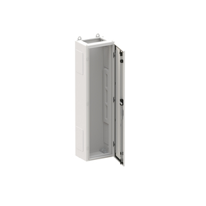Wandschrank, Baureihe TwinLine, Leerschrank, Anbaumöglichkeit: seitlich und unten, Montageart: Aufputz, für den Innenbereich, mit Tür, Schutzklasse II (schutzisoliert), Schutzart IP55, geltende Normen: DIN EN 61439-1, VDE 0660-600-1, DIN EN 61439-2, VDE 0660-600-2, DIN EN 61439-3, VDE 0660-600-3, IK-Code IK08, pulverbeschichtet, in RAL 7035, Gehäuse aus Stahlblech, einflüglige Tür, Tür aus Stahlblech, mit Standardverschluss Doppelbart 3 mm, Türöffnungswinkel 180 Grad, Türanschlag rechts oder links, Rückwand aus Stahlblech, Leitungseinführung oben über Flanschöffnung ausgeschnitten, unten über Flanschöffnung vorgeprägt, seitlich über Flanschöffnung vorgeprägt, Abmessungen in mm (H x B x T): 1100 x 300 x 225, Rasteinheit 7 RE, Bauhöhe 3, Feldbreite 1, Platzeinheiten 84, vorbereitet für den Ausbau mit Zähler-, Verteilerfelder, Kombi-Sets, CombiLine-Module auf EDF-/WR-Montagegerüst