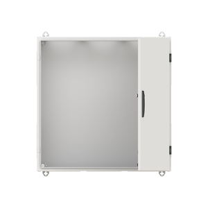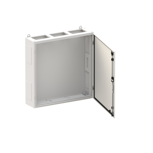 Wandschrank, Baureihe TwinLine, Leerschrank, Anbaumöglichkeit: seitlich und unten, Montageart: Aufputz, für den Innenbereich, mit Tür, Schutzklasse II (schutzisoliert), Schutzart IP55, geltende Normen: DIN EN 61439-1, VDE 0660-600-1, DIN EN 61439-2, VDE 0660-600-2, DIN EN 61439-3, VDE 0660-600-3, IK-Code IK08, pulverbeschichtet, in RAL 7035, Gehäuse aus Stahlblech, einflüglige Tür, Tür aus Stahlblech, mit Standardverschluss Doppelbart 3 mm, Türöffnungswinkel 180 Grad, Türanschlag rechts oder links, Rückwand aus Stahlblech, Leitungseinführung oben über Flanschöffnung ausgeschnitten, unten über Flanschöffnung vorgeprägt, seitlich über Flanschöffnung vorgeprägt, Abmessungen in mm (H x B x T): 800 x 800 x 225, Rasteinheit 5 RE, Bauhöhe 1, Feldbreite 3, Platzeinheiten 180, vorbereitet für den Ausbau mit Zähler-, Verteilerfelder, Kombi-Sets, CombiLine-Module auf EDF-/WR-Montagegerüst