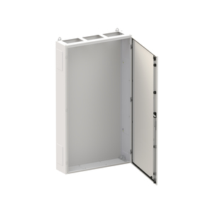 Wandschrank, Baureihe TwinLine, Leerschrank, Anbaumöglichkeit: seitlich und unten, Montageart: Aufputz, für den Innenbereich, mit Tür, Schutzklasse I (geerdet), Schutzart IP55, geltende Normen: DIN EN 61439-1, VDE 0660-600-1, DIN EN 61439-2, VDE 0660-600-2, DIN EN 61439-3, VDE 0660-600-3, IK-Code IK08, pulverbeschichtet, in RAL 7035, Gehäuse aus Stahlblech, einflüglige Tür, Tür aus Stahlblech, mit Standardverschluss Doppelbart 3 mm, Türöffnungswinkel 180 Grad, Türanschlag rechts oder links, Rückwand aus Stahlblech, Leitungseinführung oben über Flanschöffnung ausgeschnitten, unten über Flanschöffnung vorgeprägt, seitlich über Flanschöffnung vorgeprägt, Abmessungen in mm (H x B x T): 1400 x 800 x 225, Rasteinheit 9 RE, Bauhöhe 5, Feldbreite 3, Platzeinheiten 324, vorbereitet für den Ausbau mit Zähler-, Verteilerfelder, Kombi-Sets, CombiLine-Module oder Montageplatten auf EDF-/WR-Montagegerüst