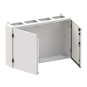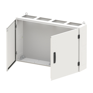 Wandschrank, Baureihe TwinLine, Leerschrank, Anbaumöglichkeit: seitlich und unten, Montageart: Aufputz, für den Innenbereich, mit Tür, Schutzklasse I (geerdet), Schutzart IP55, geltende Normen: DIN EN 61439-1, VDE 0660-600-1, DIN EN 61439-2, VDE 0660-600-2, DIN EN 61439-3, VDE 0660-600-3, IK-Code IK08, pulverbeschichtet, in RAL 7035, Gehäuse aus Stahlblech, Doppeltür, Tür aus Stahlblech, mit Standardverschluss Doppelbart 3 mm, Türöffnungswinkel 180 Grad, Türanschlag rechts und links, Rückwand aus Stahlblech, Leitungseinführung oben über Flanschöffnung ausgeschnitten, unten über Flanschöffnung vorgeprägt, seitlich über Flanschöffnung vorgeprägt, Abmessungen in mm (H x B x T): 650 x 1050 x 225, Rasteinheit 4 RE, Bauhöhe 0, Feldbreite 4, Platzeinheiten 192, vorbereitet für den Ausbau mit Zähler-, Verteilerfelder, Kombi-Sets, CombiLine-Module oder Montageplatten auf EDF-/WR-Montagegerüst