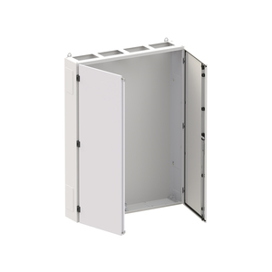 Wandschrank, Baureihe TwinLine, Leerschrank, Anbaumöglichkeit: seitlich und unten, Montageart: Aufputz, für den Innenbereich, mit Tür, Schutzklasse I (geerdet), Schutzart IP55, geltende Normen: DIN EN 61439-1, VDE 0660-600-1, DIN EN 61439-2, VDE 0660-600-2, DIN EN 61439-3, VDE 0660-600-3, IK-Code IK08, pulverbeschichtet, in RAL 7035, Gehäuse aus Stahlblech, Doppeltür, Tür aus Stahlblech, mit Standardverschluss Doppelbart 3 mm, Türöffnungswinkel 180 Grad, Türanschlag rechts und links, Rückwand aus Stahlblech, Leitungseinführung oben über Flanschöffnung ausgeschnitten, unten über Flanschöffnung vorgeprägt, seitlich über Flanschöffnung vorgeprägt, Abmessungen in mm (H x B x T): 1400 x 1050 x 225, Rasteinheit 9 RE, Bauhöhe 5, Feldbreite 4, Platzeinheiten 432, vorbereitet für den Ausbau mit Zähler-, Verteilerfelder, Kombi-Sets, CombiLine-Module oder Montageplatten auf EDF-/WR-Montagegerüst