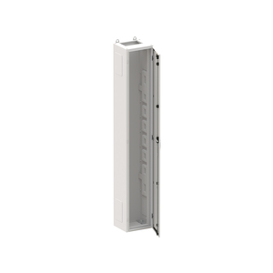 Standschrank, Baureihe TwinLine, Leerschrank, Anbaumöglichkeit: seitlich und unten, Montageart: Aufputz, für den Innenbereich, mit Tür, Schutzklasse II (schutzisoliert), Schutzart IP55, geltende Normen: DIN EN 61439-1, VDE 0660-600-1, DIN EN 61439-2, VDE 0660-600-2, DIN EN 61439-3, VDE 0660-600-3, IK-Code IK08, pulverbeschichtet, in RAL 7035, Gehäuse aus Stahlblech, einflüglige Tür, Tür aus Stahlblech, mit Standardverschluss Doppelbart 3 mm, Türöffnungswinkel 180 Grad, Türanschlag rechts oder links, Rückwand aus Stahlblech, Leitungseinführung oben über Flanschöffnung ausgeschnitten, unten über Flanschöffnung vorgeprägt, seitlich über Flanschöffnung vorgeprägt, Abmessungen in mm (H x B x T): 1850 x 300 x 275, Rasteinheit 12 RE, Bauhöhe 8, Feldbreite 1, Platzeinheiten 144, vorbereitet für den Ausbau mit Zähler-, Verteilerfelder, Kombi-Sets, CombiLine-Module auf EDF-/WR-Montagegerüst