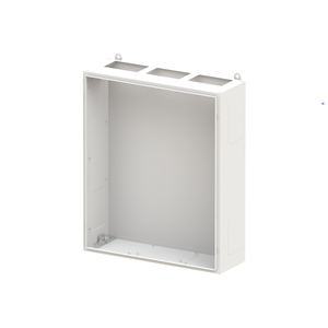 Wandschrank, Baureihe TwinLine, Leerschrank, Anbaumöglichkeit: seitlich und unten, Montageart: Aufputz, für den Innenbereich, ohne Tür, Schutzklasse I (geerdet), Schutzart IP30, geltende Normen: DIN EN 61439-1, VDE 0660-600-1, DIN EN 61439-2, VDE 0660-600-2, DIN EN 61439-3, VDE 0660-600-3, IK-Code IK08, pulverbeschichtet, in RAL 7035, Gehäuse aus Stahlblech, ohne Tür, Rückwand aus Stahlblech, Leitungseinführung oben über Flanschöffnung ausgeschnitten, unten über Flanschöffnung vorgeprägt, seitlich über Flanschöffnung vorgeprägt, Abmessungen in mm (H x B x T): 950 x 800 x 275, Rasteinheit 6 RE, Bauhöhe 2, Feldbreite 3, Platzeinheiten 216, vorbereitet für den Ausbau mit Zähler-, Verteilerfelder, Kombi-Sets, CombiLine-Module oder Montageplatten auf EDF-/WR-Montagegerüst