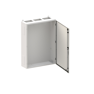 Wandschrank, Baureihe TwinLine, Leerschrank, Anbaumöglichkeit: seitlich und unten, Montageart: Aufputz, für den Innenbereich, mit Tür, Schutzklasse I (geerdet), Schutzart IP55, geltende Normen: DIN EN 61439-1, VDE 0660-600-1, DIN EN 61439-2, VDE 0660-600-2, DIN EN 61439-3, VDE 0660-600-3, IK-Code IK08, pulverbeschichtet, in RAL 7035, Gehäuse aus Stahlblech, einflüglige Tür, Tür aus Stahlblech, mit Standardverschluss Doppelbart 3 mm, Türöffnungswinkel 180 Grad, Türanschlag rechts oder links, Rückwand aus Stahlblech, Leitungseinführung oben über Flanschöffnung ausgeschnitten, unten über Flanschöffnung vorgeprägt, seitlich über Flanschöffnung vorgeprägt, Abmessungen in mm (H x B x T): 1100 x 800 x 275, Rasteinheit 7 RE, Bauhöhe 3, Feldbreite 3, Platzeinheiten 252, vorbereitet für den Ausbau mit Zähler-, Verteilerfelder, Kombi-Sets, CombiLine-Module oder Montageplatten auf EDF-/WR-Montagegerüst