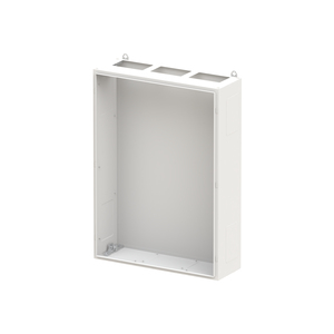 Wandschrank, Baureihe TwinLine, Leerschrank, Anbaumöglichkeit: seitlich und unten, Montageart: Aufputz, für den Innenbereich, ohne Tür, Schutzklasse I (geerdet), Schutzart IP30, geltende Normen: DIN EN 61439-1, VDE 0660-600-1, DIN EN 61439-2, VDE 0660-600-2, DIN EN 61439-3, VDE 0660-600-3, IK-Code IK08, pulverbeschichtet, in RAL 7035, Gehäuse aus Stahlblech, ohne Tür, Rückwand aus Stahlblech, Leitungseinführung oben über Flanschöffnung ausgeschnitten, unten über Flanschöffnung vorgeprägt, seitlich über Flanschöffnung vorgeprägt, Abmessungen in mm (H x B x T): 1100 x 800 x 275, Rasteinheit 7 RE, Bauhöhe 3, Feldbreite 3, Platzeinheiten 252, vorbereitet für den Ausbau mit Zähler-, Verteilerfelder, Kombi-Sets, CombiLine-Module oder Montageplatten auf EDF-/WR-Montagegerüst
