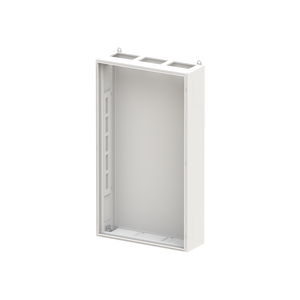 Wandschrank, Baureihe TwinLine, Leerschrank, Anbaumöglichkeit: seitlich und unten, Montageart: Aufputz, für den Innenbereich, ohne Tür, Schutzklasse II (schutzisoliert), Schutzart IP30, geltende Normen: DIN EN 61439-1, VDE 0660-600-1, DIN EN 61439-2, VDE 0660-600-2, DIN EN 61439-3, VDE 0660-600-3, IK-Code IK08, pulverbeschichtet, in RAL 7035, Gehäuse aus Stahlblech, ohne Tür, Rückwand aus Stahlblech, Leitungseinführung oben über Flanschöffnung ausgeschnitten, unten über Flanschöffnung vorgeprägt, seitlich über Flanschöffnung vorgeprägt, Abmessungen in mm (H x B x T): 1400 x 800 x 275, Rasteinheit 9 RE, Bauhöhe 5, Feldbreite 3, Platzeinheiten 324, vorbereitet für den Ausbau mit Zähler-, Verteilerfelder, Kombi-Sets, CombiLine-Module auf EDF-/WR-Montagegerüst