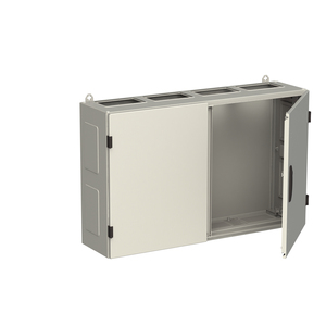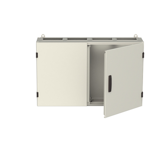 Wandschrank, Baureihe TwinLine, Leerschrank, Anbaumöglichkeit: seitlich und unten, Montageart: Aufputz, für den Innenbereich, mit Tür, Schutzklasse II (schutzisoliert), Schutzart IP55, geltende Normen: DIN EN 61439-1, VDE 0660-600-1, DIN EN 61439-2, VDE 0660-600-2, DIN EN 61439-3, VDE 0660-600-3, IK-Code IK08, pulverbeschichtet, in RAL 7035, Gehäuse aus Stahlblech, Doppeltür, Tür aus Stahlblech, mit Standardverschluss Doppelbart 3 mm, Türöffnungswinkel 180 Grad, Türanschlag rechts und links, Rückwand aus Stahlblech, Leitungseinführung oben über Flanschöffnung ausgeschnitten, unten über Flanschöffnung vorgeprägt, seitlich über Flanschöffnung vorgeprägt, Abmessungen in mm (H x B x T): 650 x 1050 x 275, Rasteinheit 4 RE, Bauhöhe 0, Feldbreite 4, Platzeinheiten 192, vorbereitet für den Ausbau mit Zähler-, Verteilerfelder, Kombi-Sets, CombiLine-Module auf EDF-/WR-Montagegerüst