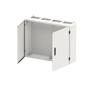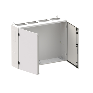 Wandschrank, Baureihe TwinLine, Leerschrank, Anbaumöglichkeit: seitlich und unten, Montageart: Aufputz, für den Innenbereich, mit Tür, Schutzklasse I (geerdet), Schutzart IP55, geltende Normen: DIN EN 61439-1, VDE 0660-600-1, DIN EN 61439-2, VDE 0660-600-2, DIN EN 61439-3, VDE 0660-600-3, IK-Code IK08, pulverbeschichtet, in RAL 7035, Gehäuse aus Stahlblech, Doppeltür, Tür aus Stahlblech, mit Standardverschluss Doppelbart 3 mm, Türöffnungswinkel 180 Grad, Türanschlag rechts und links, Rückwand aus Stahlblech, Leitungseinführung oben über Flanschöffnung ausgeschnitten, unten über Flanschöffnung vorgeprägt, seitlich über Flanschöffnung vorgeprägt, Abmessungen in mm (H x B x T): 800 x 1050 x 275, Rasteinheit 5 RE, Bauhöhe 1, Feldbreite 4, Platzeinheiten 240, vorbereitet für den Ausbau mit Zähler-, Verteilerfelder, Kombi-Sets, CombiLine-Module oder Montageplatten auf EDF-/WR-Montagegerüst
