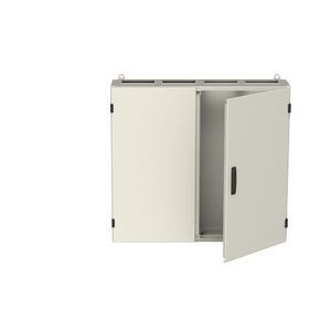Wandschrank, Baureihe TwinLine, Leerschrank, Anbaumöglichkeit: seitlich und unten, Montageart: Aufputz, für den Innenbereich, mit Tür, Schutzklasse II (schutzisoliert), Schutzart IP55, geltende Normen: DIN EN 61439-1, VDE 0660-600-1, DIN EN 61439-2, VDE 0660-600-2, DIN EN 61439-3, VDE 0660-600-3, IK-Code IK08, pulverbeschichtet, in RAL 7035, Gehäuse aus Stahlblech, Doppeltür, Tür aus Stahlblech, mit Standardverschluss Doppelbart 3 mm, Türöffnungswinkel 180 Grad, Türanschlag rechts und links, Rückwand aus Stahlblech, Leitungseinführung oben über Flanschöffnung ausgeschnitten, unten über Flanschöffnung vorgeprägt, seitlich über Flanschöffnung vorgeprägt, Abmessungen in mm (H x B x T): 950 x 1050 x 275, Rasteinheit 6 RE, Bauhöhe 2, Feldbreite 4, Platzeinheiten 288, vorbereitet für den Ausbau mit Zähler-, Verteilerfelder, Kombi-Sets, CombiLine-Module auf EDF-/WR-Montagegerüst