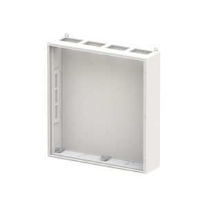 Wandschrank, Baureihe TwinLine, Leerschrank, Anbaumöglichkeit: seitlich und unten, Montageart: Aufputz, für den Innenbereich, ohne Tür, Schutzklasse II (schutzisoliert), Schutzart IP30, geltende Normen: DIN EN 61439-1, VDE 0660-600-1, DIN EN 61439-2, VDE 0660-600-2, DIN EN 61439-3, VDE 0660-600-3, IK-Code IK08, pulverbeschichtet, in RAL 7035, Gehäuse aus Stahlblech, ohne Tür, Rückwand aus Stahlblech, Leitungseinführung oben über Flanschöffnung ausgeschnitten, unten über Flanschöffnung vorgeprägt, seitlich über Flanschöffnung vorgeprägt, Abmessungen in mm (H x B x T): 1100 x 1050 x 275, Rasteinheit 7 RE, Bauhöhe 3, Feldbreite 4, Platzeinheiten 336, vorbereitet für den Ausbau mit Zähler-, Verteilerfelder, Kombi-Sets, CombiLine-Module auf EDF-/WR-Montagegerüst