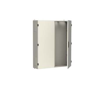 Wandschrank, Baureihe TwinLine, Leerschrank, Anbaumöglichkeit: seitlich und unten, Montageart: Aufputz, für den Innenbereich, mit Tür, Schutzklasse II (schutzisoliert), Schutzart IP55, geltende Normen: DIN EN 61439-1, VDE 0660-600-1, DIN EN 61439-2, VDE 0660-600-2, DIN EN 61439-3, VDE 0660-600-3, IK-Code IK08, pulverbeschichtet, in RAL 7035, Gehäuse aus Stahlblech, Doppeltür, Tür aus Stahlblech, mit Standardverschluss Doppelbart 3 mm, Türöffnungswinkel 180 Grad, Türanschlag rechts und links, Rückwand aus Stahlblech, Leitungseinführung oben über Flanschöffnung ausgeschnitten, unten über Flanschöffnung vorgeprägt, seitlich über Flanschöffnung vorgeprägt, Abmessungen in mm (H x B x T): 1250 x 1050 x 275, Rasteinheit 8 RE, Bauhöhe 4, Feldbreite 4, Platzeinheiten 384, vorbereitet für den Ausbau mit Zähler-, Verteilerfelder, Kombi-Sets, CombiLine-Module auf EDF-/WR-Montagegerüst