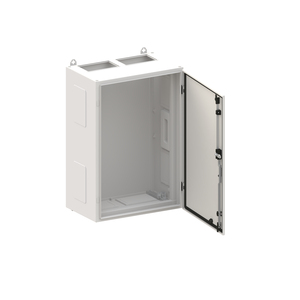 Wandschrank, Baureihe TwinLine, Leerschrank, Anbaumöglichkeit: seitlich und unten, Montageart: Aufputz, für den Innenbereich, mit Tür, Schutzklasse II (schutzisoliert), Schutzart IP55, geltende Normen: DIN EN 61439-1, VDE 0660-600-1, DIN EN 61439-2, VDE 0660-600-2, DIN EN 61439-3, VDE 0660-600-3, IK-Code IK08, pulverbeschichtet, in RAL 7035, Gehäuse aus Stahlblech, einflüglige Tür, Tür aus Stahlblech, mit Standardverschluss Doppelbart 3 mm, Türöffnungswinkel 180 Grad, Türanschlag rechts oder links, Rückwand aus Stahlblech, Leitungseinführung oben über Flanschöffnung ausgeschnitten, unten über Flanschöffnung vorgeprägt, seitlich über Flanschöffnung vorgeprägt, Abmessungen in mm (H x B x T): 800 x 550 x 350, Rasteinheit 5 RE, Bauhöhe 1, Feldbreite 2, Platzeinheiten 120, vorbereitet für den Ausbau mit Zähler-, Verteilerfelder, Kombi-Sets, CombiLine-Module auf EDF-/WR-Montagegerüst