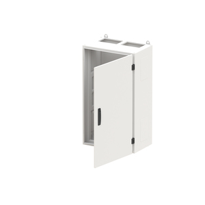 Wandschrank, Baureihe TwinLine, Leerschrank, Anbaumöglichkeit: seitlich und unten, Montageart: Aufputz, für den Innenbereich, mit Tür, Schutzklasse II (schutzisoliert), Schutzart IP55, geltende Normen: DIN EN 61439-1, VDE 0660-600-1, DIN EN 61439-2, VDE 0660-600-2, DIN EN 61439-3, VDE 0660-600-3, IK-Code IK08, pulverbeschichtet, in RAL 7035, Gehäuse aus Stahlblech, einflüglige Tür, Tür aus Stahlblech, mit Standardverschluss Doppelbart 3 mm, Türöffnungswinkel 180 Grad, Türanschlag rechts oder links, Rückwand aus Stahlblech, Leitungseinführung oben über Flanschöffnung ausgeschnitten, unten über Flanschöffnung vorgeprägt, seitlich über Flanschöffnung vorgeprägt, Abmessungen in mm (H x B x T): 950 x 550 x 350, Rasteinheit 6 RE, Bauhöhe 2, Feldbreite 2, Platzeinheiten 144, vorbereitet für den Ausbau mit Zähler-, Verteilerfelder, Kombi-Sets, CombiLine-Module auf EDF-/WR-Montagegerüst