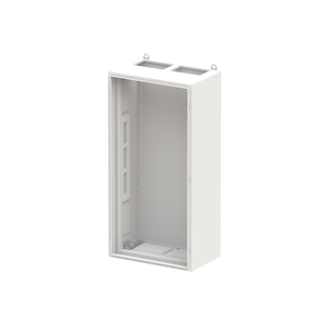 Wandschrank, Baureihe TwinLine, Leerschrank, Anbaumöglichkeit: seitlich und unten, Montageart: Aufputz, für den Innenbereich, ohne Tür, Schutzklasse II (schutzisoliert), Schutzart IP30, geltende Normen: DIN EN 61439-1, VDE 0660-600-1, DIN EN 61439-2, VDE 0660-600-2, DIN EN 61439-3, VDE 0660-600-3, IK-Code IK08, pulverbeschichtet, in RAL 7035, Gehäuse aus Stahlblech, ohne Tür, Rückwand aus Stahlblech, Leitungseinführung oben über Flanschöffnung ausgeschnitten, unten über Flanschöffnung vorgeprägt, seitlich über Flanschöffnung vorgeprägt, Abmessungen in mm (H x B x T): 1100 x 550 x 350, Rasteinheit 7 RE, Bauhöhe 3, Feldbreite 2, Platzeinheiten 168, vorbereitet für den Ausbau mit Zähler-, Verteilerfelder, Kombi-Sets, CombiLine-Module auf EDF-/WR-Montagegerüst