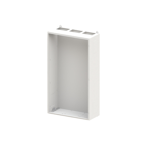 Wandschrank, Baureihe TwinLine, Leerschrank, Anbaumöglichkeit: seitlich und unten, Montageart: Aufputz, für den Innenbereich, ohne Tür, Schutzklasse I (geerdet), Schutzart IP30, geltende Normen: DIN EN 61439-1, VDE 0660-600-1, DIN EN 61439-2, VDE 0660-600-2, DIN EN 61439-3, VDE 0660-600-3, IK-Code IK08, pulverbeschichtet, in RAL 7035, Gehäuse aus Stahlblech, ohne Tür, Rückwand aus Stahlblech, Leitungseinführung oben über Flanschöffnung ausgeschnitten, unten über Flanschöffnung vorgeprägt, seitlich über Flanschöffnung vorgeprägt, Abmessungen in mm (H x B x T): 1400 x 800 x 350, Rasteinheit 9 RE, Bauhöhe 5, Feldbreite 3, Platzeinheiten 324, vorbereitet für den Ausbau mit Zähler-, Verteilerfelder, Kombi-Sets, CombiLine-Module oder Montageplatten auf EDF-/WR-Montagegerüst