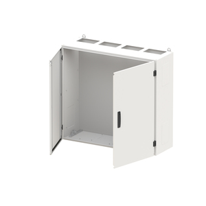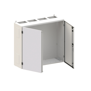 Wandschrank, Baureihe TwinLine, Leerschrank, Anbaumöglichkeit: seitlich und unten, Montageart: Aufputz, für den Innenbereich, mit Tür, Schutzklasse I (geerdet), Schutzart IP55, geltende Normen: DIN EN 61439-1, VDE 0660-600-1, DIN EN 61439-2, VDE 0660-600-2, DIN EN 61439-3, VDE 0660-600-3, IK-Code IK08, pulverbeschichtet, in RAL 7035, Gehäuse aus Stahlblech, Doppeltür, Tür aus Stahlblech, mit Standardverschluss Doppelbart 3 mm, Türöffnungswinkel 180 Grad, Türanschlag rechts und links, Rückwand aus Stahlblech, Leitungseinführung oben über Flanschöffnung ausgeschnitten, unten über Flanschöffnung vorgeprägt, seitlich über Flanschöffnung vorgeprägt, Abmessungen in mm (H x B x T): 950 x 1050 x 350, Rasteinheit 6 RE, Bauhöhe 2, Feldbreite 4, Platzeinheiten 288, vorbereitet für den Ausbau mit Zähler-, Verteilerfelder, Kombi-Sets, CombiLine-Module oder Montageplatten auf EDF-/WR-Montagegerüst