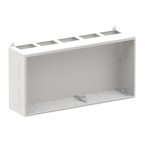Wandschrank, Baureihe TwinLine, Leerschrank, Anbaumöglichkeit: seitlich und unten, Montageart: Aufputz, für den Innenbereich, ohne Tür, Schutzklasse I (geerdet), Schutzart IP30, geltende Normen: DIN EN 61439-1, VDE 0660-600-1, DIN EN 61439-2, VDE 0660-600-2, DIN EN 61439-3, VDE 0660-600-3, IK-Code IK08, pulverbeschichtet, in RAL 7035, Gehäuse aus Stahlblech, ohne Tür, Rückwand aus Stahlblech, Leitungseinführung oben über Flanschöffnung ausgeschnitten, unten über Flanschöffnung vorgeprägt, seitlich über Flanschöffnung vorgeprägt, Abmessungen in mm (H x B x T): 650 x 1300 x 350, Rasteinheit 4 RE, Bauhöhe 0, Feldbreite 5, Platzeinheiten 240, vorbereitet für den Ausbau mit Zähler-, Verteilerfelder, Kombi-Sets, CombiLine-Module oder Montageplatten auf EDF-/WR-Montagegerüst