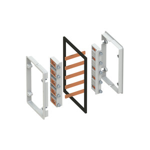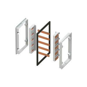 Sammelschienenverbinder, zum Verbinden von Cu-Schienen zwischen zwei Schränken, mit Isolierrahmen und inkl. Verbindungsmaterial, 1 Satz 5-polig, für Cu 12 x 5 mm, passend für TwinLine Wand- und Standschränke.
