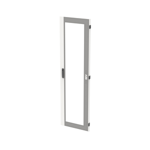 Tür mit Sichtscheibe, Feldbreite 2, 12 RE, pulverbeschichtet, Farbe: RAL 7035, Tür mit Stangenverschluss und Standardverschluss Doppelbart 3 mm, passend für Standschränke TwinLine-X/W/L/G212.
