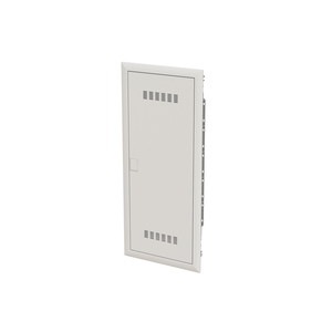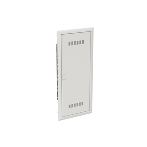 Multimedia-Verteiler, Baureihe UK600, Anbaumöglichkeit: seitlich und unten, Montageart: Unterputz, Hohlwand mit Zubehör, teilversenkt, für den Innenbereich, mit Blendrahmen und Tür, Schutzklasse II (schutzisoliert), Schutzart IP30, geltende Normen: DIN 43871, DIN EN 60670-24; VDE 0606-24, IK-Code IK07, Bemessungsbetriebsspannung Ue 400V AC 50/60 Hz, Bemessungsstrom In 63 A, Glühdrahtfestigkeit 850°C, nicht UV beständigpulverbeschichtet, in RAL 9016, Gehäuse aus Thermoplast, mit Blendrahmen und belüfteter Stahlblechtür, Tür aus Stahlblech, in RAL 9016, mit Tip In-Verschluss, Türöffnungswinkel 120 Grad, Türanschlag rechts oder links, Leitungseinführung oben über Leitungseinführungsschieber vorgeprägt, unten über Leitungseinführungsschieber vorgeprägt, seitlich über Vorprägungen, Rückwand vorgeprägt, Abmessungen in mm (H x B x T): 872 x 384 x 97, Blendrahmenmaße in mm (H x B x T): 872 x 384 x 9, Platzeinheiten 60, Kabelabfangschiene integriert, ausgebaut mit Patchpanel, Montageplatte für Multimediaanwendungen und 3-fach Steckdose drehbar