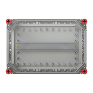 VMS32H Lasttrennschaltergehäuse für Lasttrennschalter bis 63A auf DIN-Schiene: 2x OT40F - OT63F. HxBxT: 220 x 320 x 179 mm. Gehäuse mit vier offenen Seiten ohne Verschluss oder Kombiflansch. Für 3-polige oder 4-polige Geräte. DIN-Schiene 35 x 7,3 mm. PE/N-Klemmen sind nicht enthalten