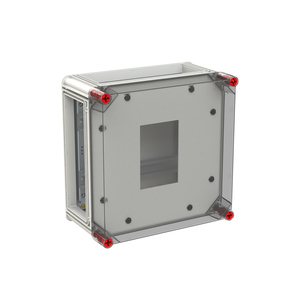 VMS 33 Zählergehäuse für 1 eHZ Messgerät. HxBxT: 320 x 320 x 179 mm. Gehäuse mit transparentem Deckel, vier offenen Seiten ohne Verschluss oder Kombiflanschen. Abdeckplatte mit Aussparung für den eHZ, der BKE-I-Adapter ist nicht enthalten und muss separat bestellt werden
