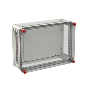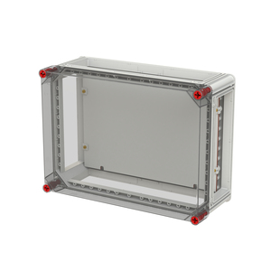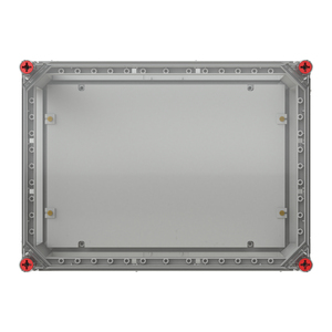 VMS 43 Montageplattengehäuse mit transparentem Deckel. HxBxT: 440 x 320 x 179 mm. Gehäuse mit vier offenen Seiten ohne Verschluss oder Kombiflanschen. PERTINAX-Montageplatte 380x260x5 mm