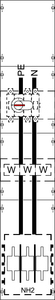 Wandlerfeld, Komplettfeld, für den Innenbereich, Schutzart IP2XC, geltende Normen: DIN EN 61439-1, VDE 0660-600-1, DIN EN 61439-2, VDE 0660-600-2, Bemessungsstrom In 200 A, Bemessungsstrom der Schaltgerätekombination InA 200 A, in RAL 7035, Abmessungen in mm (H x B x T): 1350 x 250 x 160, Netzsystem TN-S, 5-polig, Netzseitiger Anschlussraum SG-Platz: mit Sammelschiene, Lastbereich: Sammelschienensystem Cu-Schienen 12 x 5 mm 5-polig, Trennstelle vor dem Wandler Sicherungsunterteil NH2/400 A, Wandlerbereich Montageplatte für Einzelwandler mit Fußbefestigung zum Durchführen der Leitung, Ritz: EKS 60-03, EKS 70-04, EKSO 74, MBS: EASK 31.3, EASK 31.4, EASK 31.5, EASK 41.4, EASK 41.5 (Beistellung NB), Trennstelle nach dem Wandler Lastschalter 250 A / 3-polig (M8), Primärverdrahtung 120 qmm, Anschluss N+PE (M8), Rasteinheit 9 RE, Bauhöhe 5, Feldbreite 1, Platzeinheiten 108, Abdeckungen aus Kunststoff, plombierbarer Schnellverschluss, RAL 7035