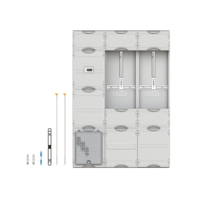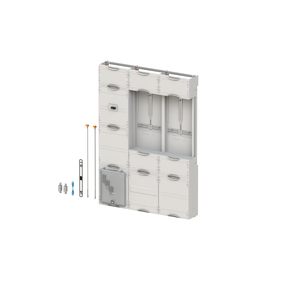 Mess- und Wandlerfeld, Baureihe ComfortLine, Komplettfeld, mit Zählerkreuz, für den Innenbereich, Schutzart IP2XC, geltende Normen: DIN VDE 0603-2-2, VDE AR-N 4100:2019-04, Bemessungsbetriebsspannung Ue 415V AC 50/60 Hz, Bemessungsstrom In 100 A, Bemessungsstrom der Schaltgerätekombination InA 100 A, in RAL 7035, Abmessungen in mm (H x B x T): 1050 x 750 x 160, Netzsystem TN-S, 5-polig, Anzahl SG-Plätze 1, Anzahl Wandlerzählerplatz 1, verdrahtet nach den Vorgaben vom FNN Hinweis, Spannungspfad Sicherungssockel D01/3-polig mit 10A Sicherung, Lastbereich: Sammelschienensystem Cu-Schienen 12 x 5 mm 5-polig, Trennstelle vor dem Wandler Sicherungsunterteile 1x3xNH00/125 A, Wandlerbereich Wandlerauflage mit herausnehmbarer Wandlerlasche 170 x 30 x 5 mm, Ritz: EKS 60-03, EKS 70-04, EKSO 74, MBS: EASK 31.3, EASK 31.4, EASK 31.5, EASK 41.4, EASK 41.5 (Beistellung NB), Trennstelle nach dem Wandler Lastschalter 125 A / 3-polig (10-70qmm), Primärverdrahtung 35 qmm, N+PE 2 Anschlüsse N+PE 95qmm, Rasteinheit 7 RE, Bauhöhe 3, Feldbreite 3, Platzeinheiten 252, Abdeckungen aus Kunststoff, plombierbarer Schnellverschluss, RAL 7035
