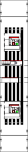 EEG-Feld, Bausatz unmontiert, geltende Normen: VDE AR-N 4105:2018-11, Bemessungsbetriebsspannung Ue 415V AC 50 Hz, Bemessungsstrom In 200 A, Bemessungsstrom der Schaltgerätekombination InA 200 A, Abmessungen in mm (H x B x T): 1050 x 250 x 160, Netzsystem TN-S, auch für TT-System geeignet, 5-polig, Abdeckungen aus Kunststoff, plombierbarer Schnellverschluss