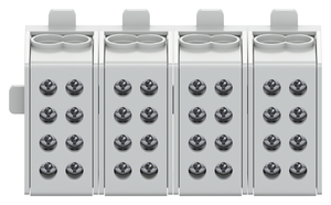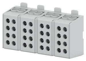 Hauptleitungsklemme 4-polig, 2x 35mm² und 2x 25mm² je Pol (4 Klemmstellen), Nennstrom 100A, Schutzklasse IP20, fingersicher, zur Montage auf Hutschienen