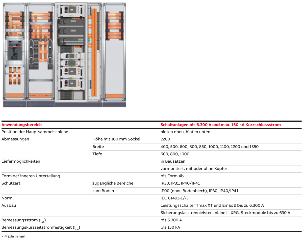 Das System pro E power RBBS (Rear Busbar System) mit hinten liegendem Sammelschienensystem ist die neueste Niederspannungs-Schaltanlagenlösung für die Hauptverteilung mit einem Bemessungsstrom bis 6.300 A und einem Bemessungskurzzeitstrom von bis zu 150 kA. Sie wurde entwickelt, um alle Anforderungen hinsichtlich Schutzart, Form der inneren Unterteilung und der elektrischen Eigenschaften nach den aktuellen internationalen Normen und in perfekter Synergie mit allen Niederspannungsgeräten von ABB zu erfüllen.